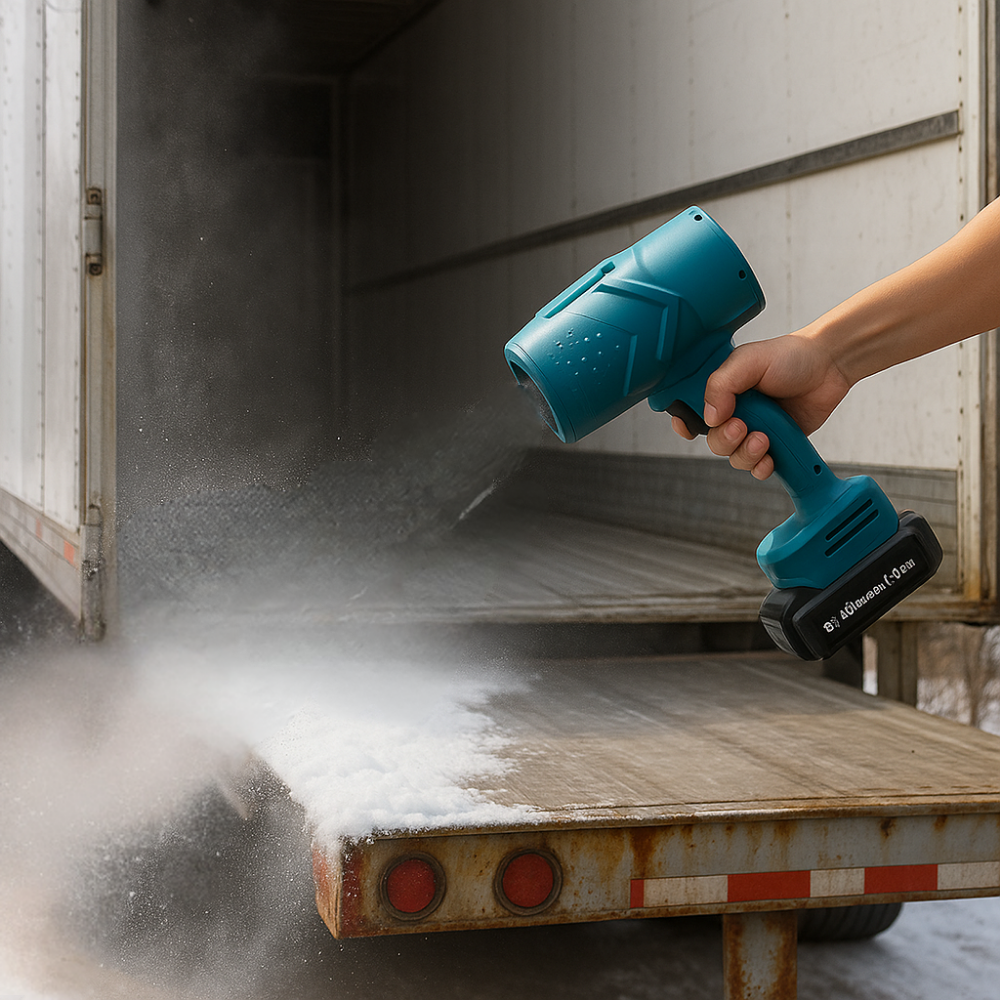 Akkumulátoros légfúvó – Ideális ponyvák gyors tisztításához és rakodótér-karbantartáshoz – Rendkívül erős légáram, amely pillanatok alatt kifújja a port, falevelet, sarat vagy havat a ponyva felületéről