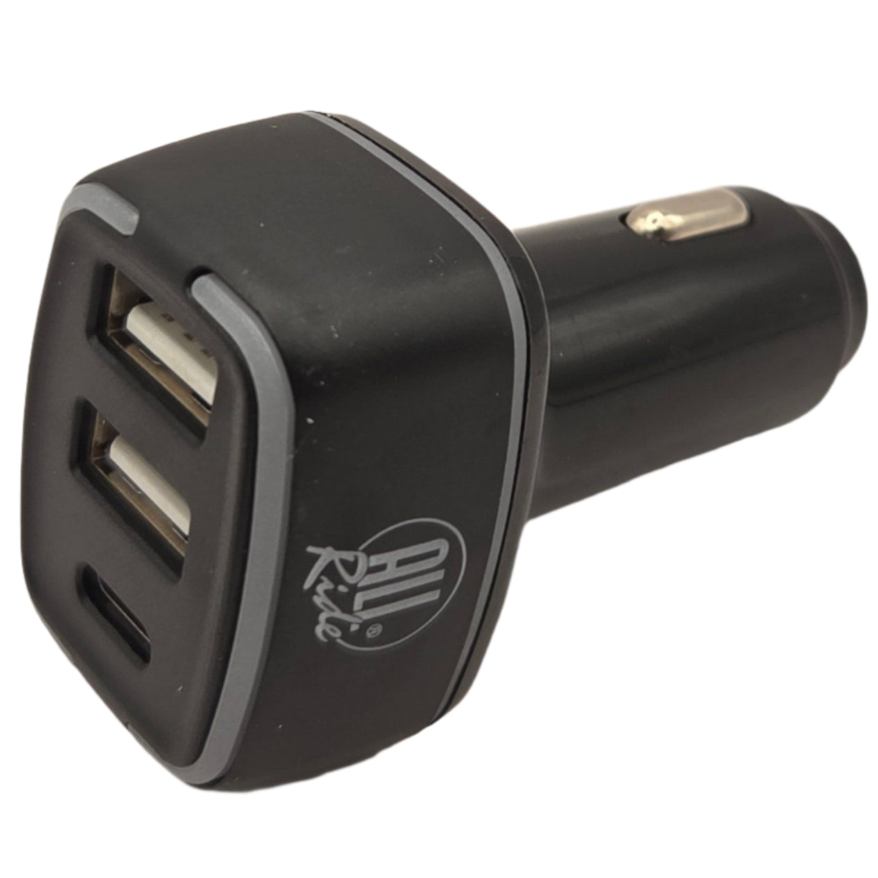 All Ride autós töltő – 3 eszköz egyidejű töltése: 2x USB-A és 1x USB-C port, Kék LED világítás