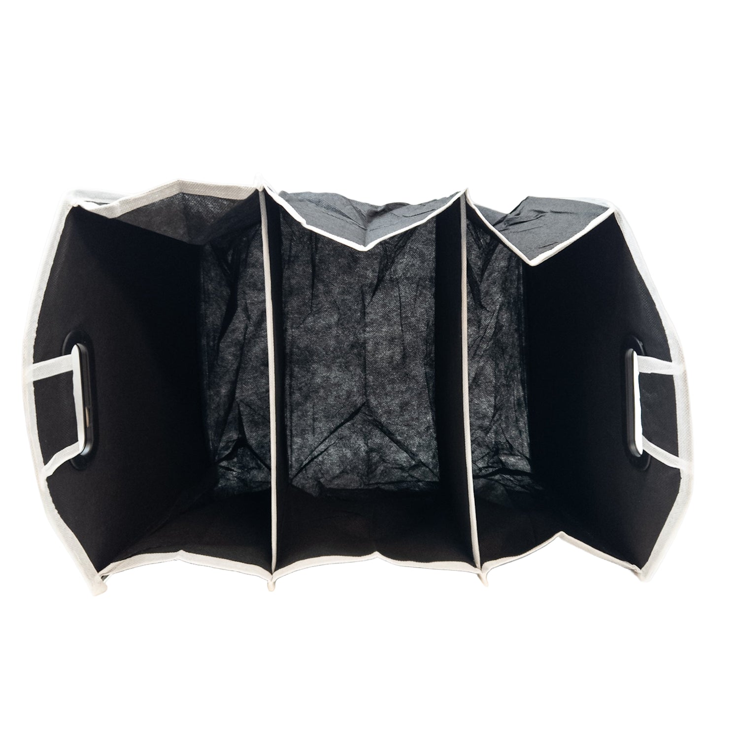 Ha épp nincs rá szükség, a Csomagtartó rendszerező összecsukható, lapjára hajtható, így alig foglal helyet. A beépített fogantyúk megkönnyítik a hordozást a csomagtartó és az otthon között. A helytakarékos kialakítás miatt könnyen elfér ülés mögött vagy a garázs polcán. Az okos belső elrendezés a teret három rekeszre osztja, így minden a helyére kerül. Mérete 32×31,5×50 cm, ezért elég nagy, mégis jól kezelhető.