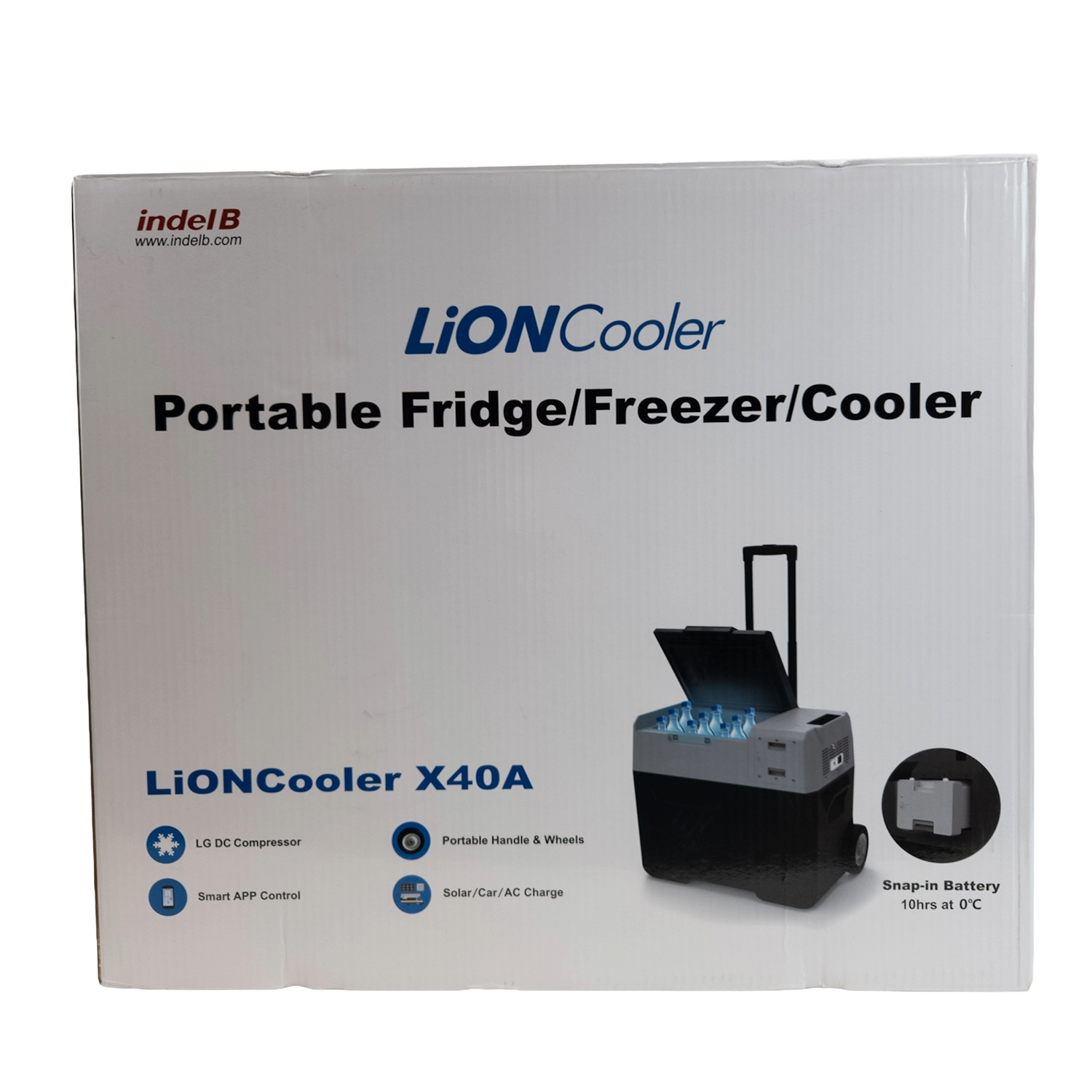 Indel B Hűtőláda – Beépített, cserélhető akkumulátor akár 21 óra üzemidővel, Masszív kerekekkel és teleszkópos fogantyúval rendelkezik