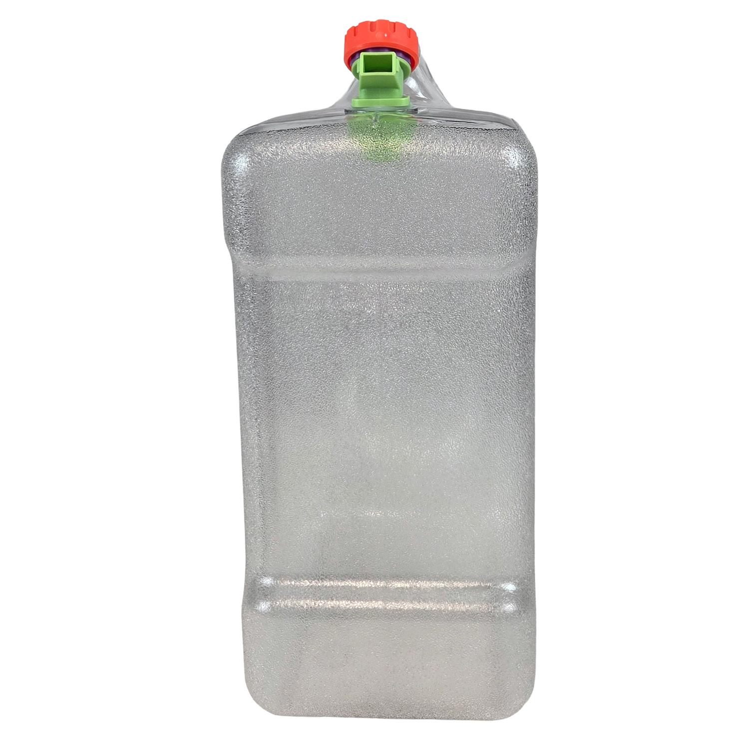 Strapabíró műanyag kanna csappal, széles nyílással és masszív fogantyúval – tökéletes választás kempinghez és műhelybe is.