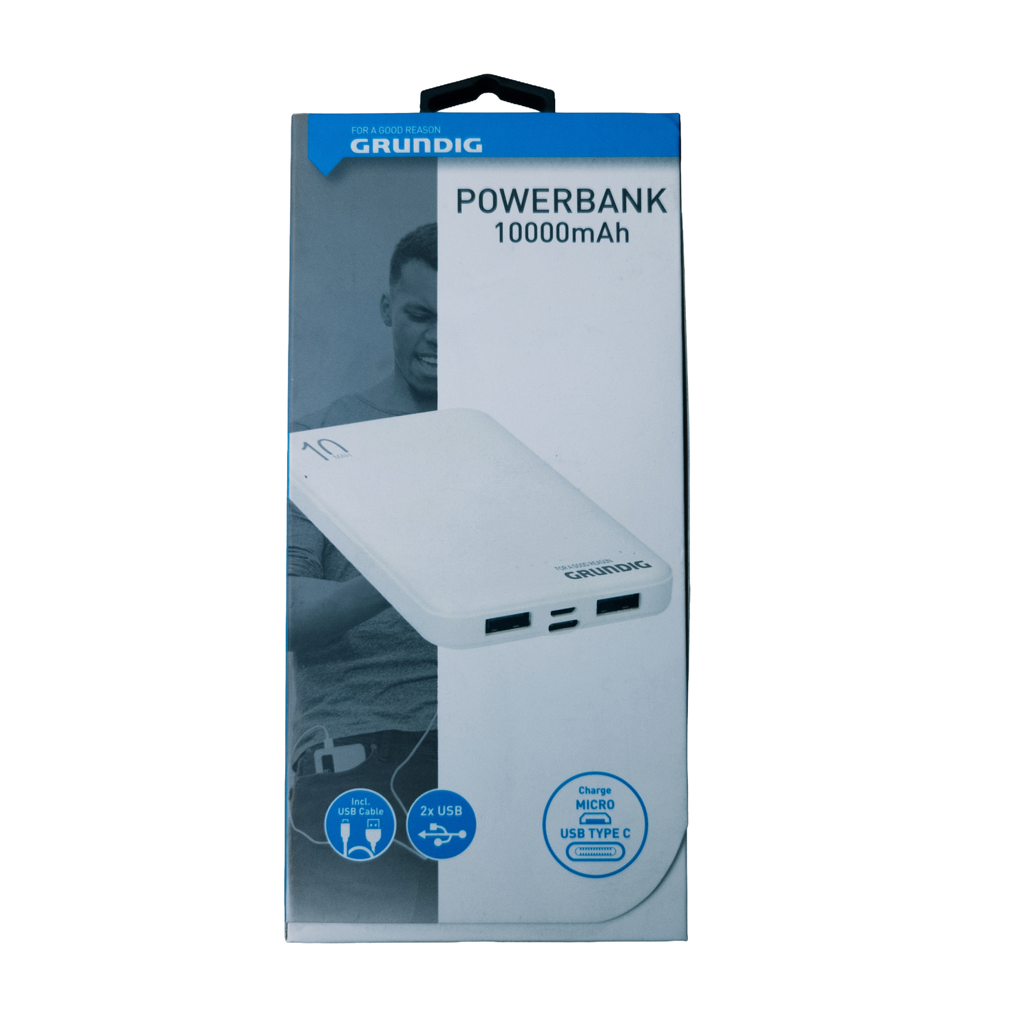 Kompakt méretű, 10000mAh kapacitású Grundig power bank fűthető mellényhez, telefonhoz és más USB-s eszközökhöz használható.