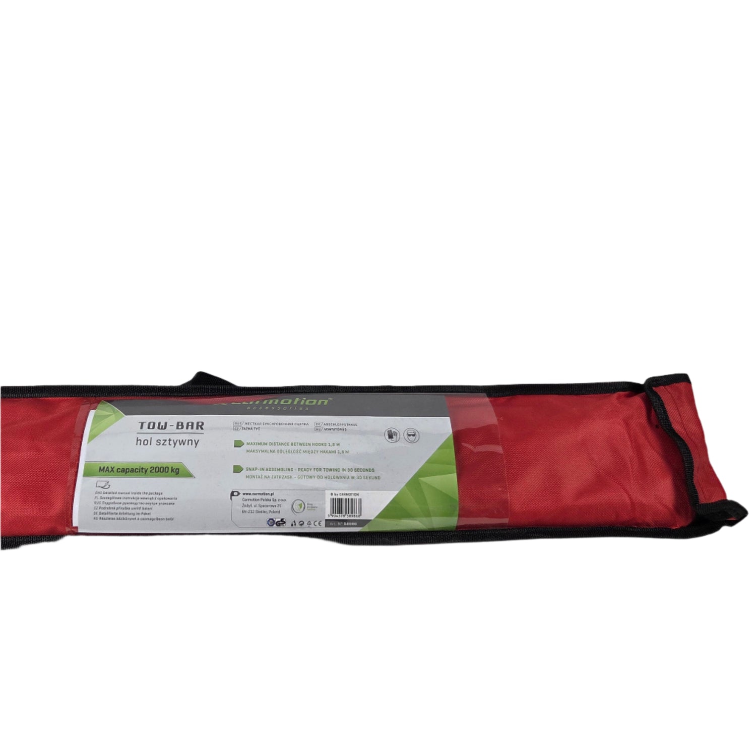 A Vonórúd egy megbízható és praktikus eszköz, amely lehetővé teszi maximum 2000 kg össztömegű járművek biztonságos vontatását. A gyors összeszerelés révén 30 másodpercen belül készen áll a használatra, így ideális megoldás lehet sürgős helyzetekben. A termék három részből áll, amelyek egymáshoz rögzíthetők biztosítócsapokkal, végükön masszív kampókkal. A teljes hossz 1,8 méter, amely optimális távolságot biztosít a vontatott és vontató jármű között. A középső szakaszon piros figyelmeztető jelzés található a jobb láthatóság érdekében.